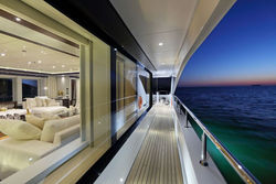 The thoughtfully crafted exterior spaces across the main decks, upper decks, and flybridge offer stunning al fresco settings perfect for delightful dining, sun-soaked lounging, and peaceful relaxation. They ensure you feel like an honored guest in your private paradise. With every detail designed for your ultimate pleasure, 'Immersive' guarantees a truly unforgettable experience.